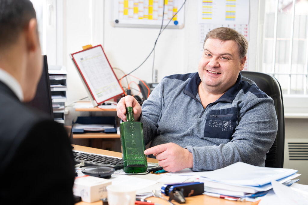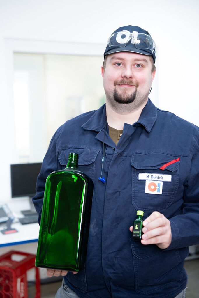 Mit modernen Maschinen und präziser Handarbeit formen unsere Mitarbeitenden täglich Glasprodukte von Kleinbehältern bis zu großvolumigen Flaschen.